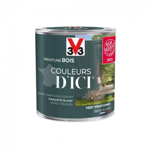 Aujourd'hui, grâce à vous et à votre soutien, Couleurs d’ICI® est élu Produit de l’Année 2021 ! (étude et test réalisés par Nielsen/treetz sur un total de plus de 15 000 consommateurs en France). La Peinture Bois Couleurs d’ICI® est une peinture extérieure et intérieure destinée à toutes les boiseries et menuiseries : volets, bardages, abris, mobiliers, portails, clôtures, palissades, balustres… Polyvalente, elle s'applique directement sur tous types de bois, neufs ou à rénover. Agréable à appliquer, elle ne coule pas, sèche rapidement et sans odeur gênante. Ultra-couvrante, elle résiste aux intempéries, UV et chocs pour des boiseries qui restent belles plus longtemps (garantie 10 ans).